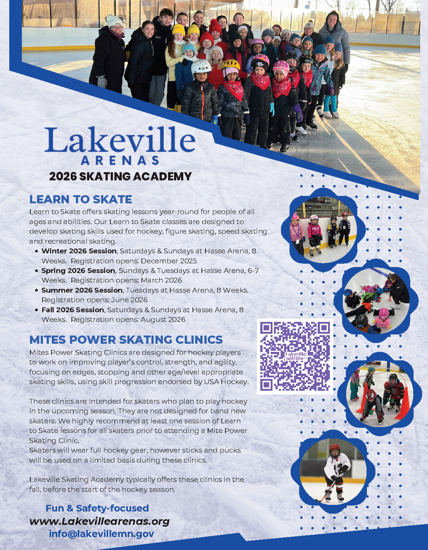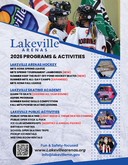Weekly & Daily Activity Posts, Schedule Updates & Changes, Weather Closings, Programming Registrations, and other Lakeville Arenas News.